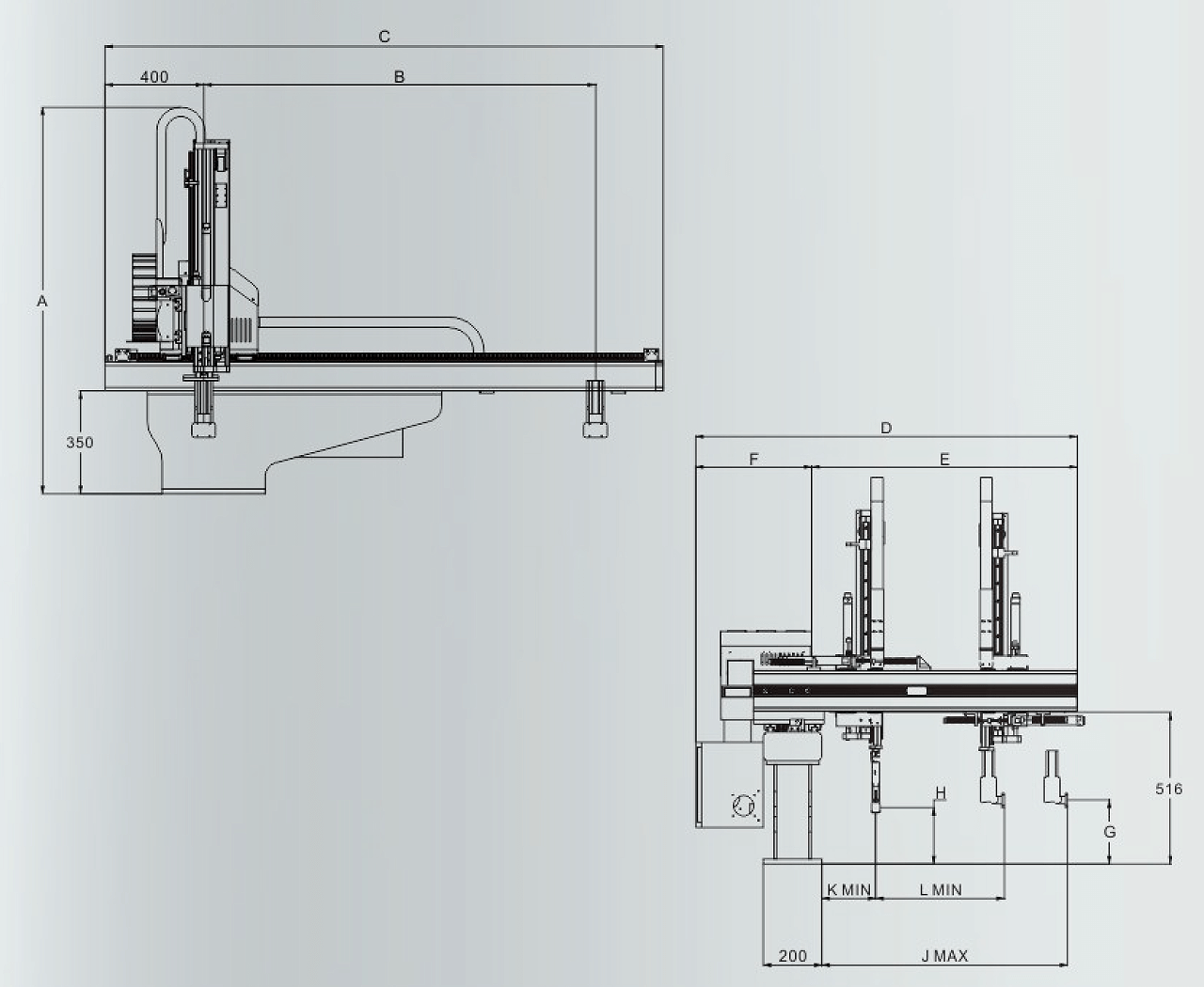 A series 橫走式機械手臂系列主要適用於100-700噸臥式射出成型機的成品取出,採用雙截式手臂,可增加副臂用于三片模的料頭取出,橫行AC伺服馬達驅動方式,引拔,上下氣壓驅動,其行程調節和位置調整方式有手動調位(標準型)和電動調位(選購型)兩種方式,配有標準吸和抱治具。